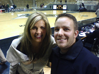 I have to tell you, I've watched this year in bars, restaurants, and at home on HD...and it was even more impressive in person. I honestly could not believe how great the view from section 18, row 15 was...and I'm not even talking about the game. Erin Andrews was set up right in front of us...so we had tremendous seats by any account. Below are a few pictures that we took with Boilerdowd's younger brother's phone. You really can't understand how good looking Ms. Andrews is until you've seen her up close. Check it out: