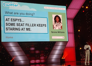 I could write a whole column about how horrible the ESPYs are, but what's the point? That show is equivalent to the proverbial fish in the barrel. (The photo shows one of the apparent ongoing gags used, showing fake Tweets -- topical!)